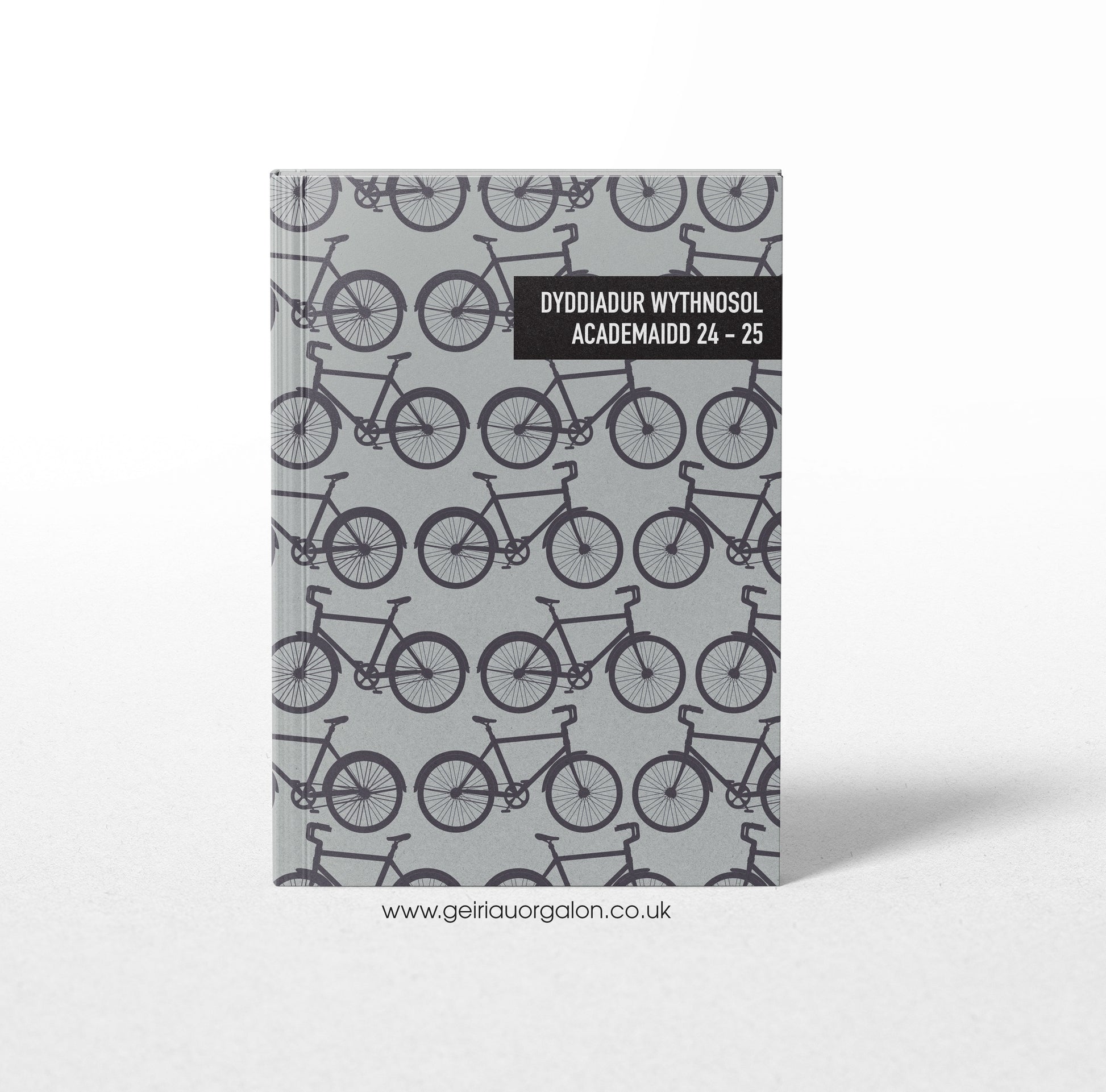 A4 Dyddiadur Wythnosol Academaidd MEGA Clawr Caled 2025 – 2026 (Beiciau Llwyd)