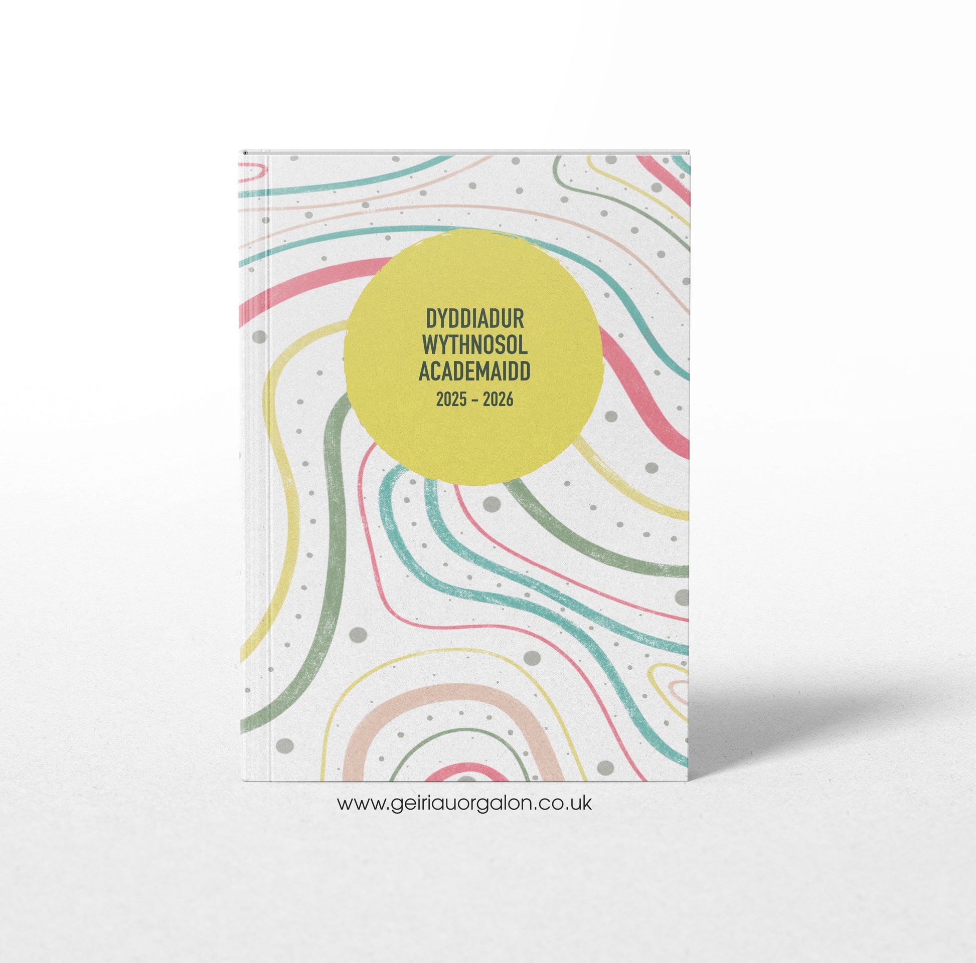 A4 Dyddiadur Wythnosol Academaidd MINI Clawr Caled 2025 – 2026 (Chwyrliadau Lliwgar)