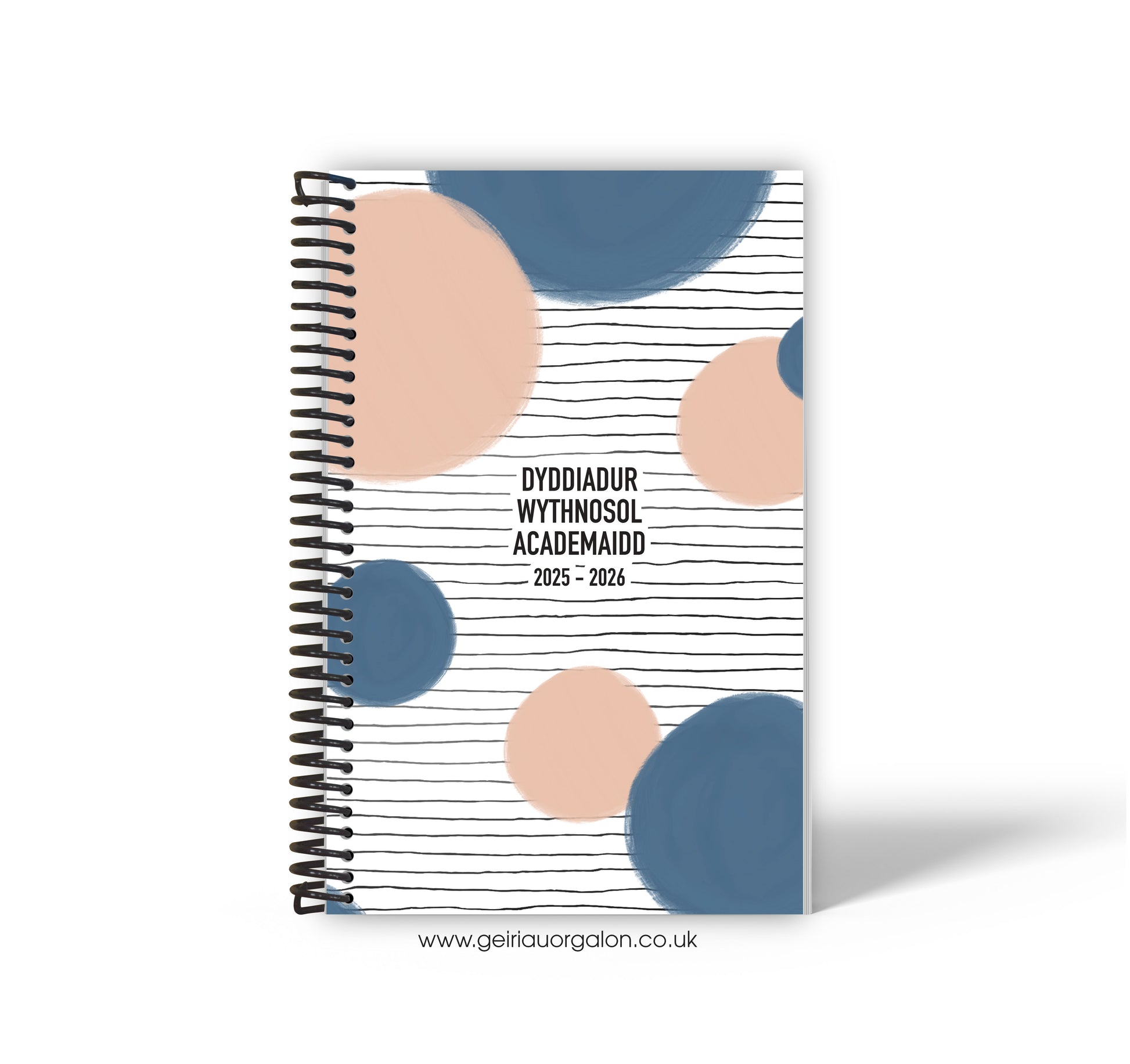 Our quality A4 Spiralbound Welsh Weekly Academic Diaries come with a variety of patterned front covers (NOT PERSONALISED). This isn’t just an academic diary – it’s a diary and notebook in one, thoughtfully divided into Autumn, Spring, and Summer terms with everything you need for your term organized in sections.