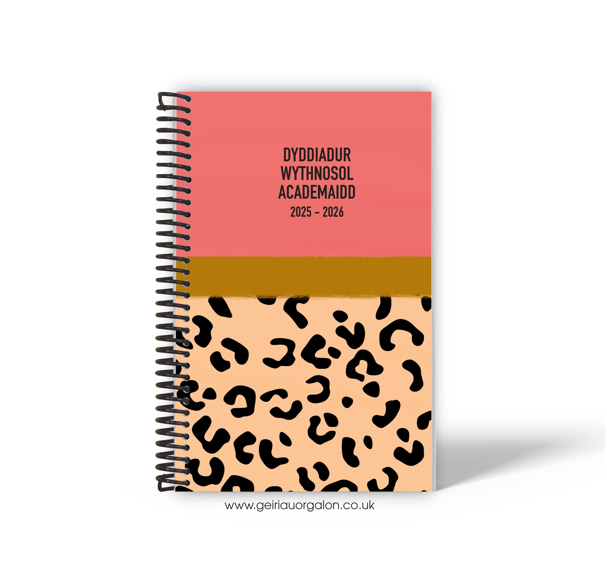 A4 Dyddiadur Wythnosol Academaidd NORMAL Spiralbound 2025-2026 (Llewpart Oren)