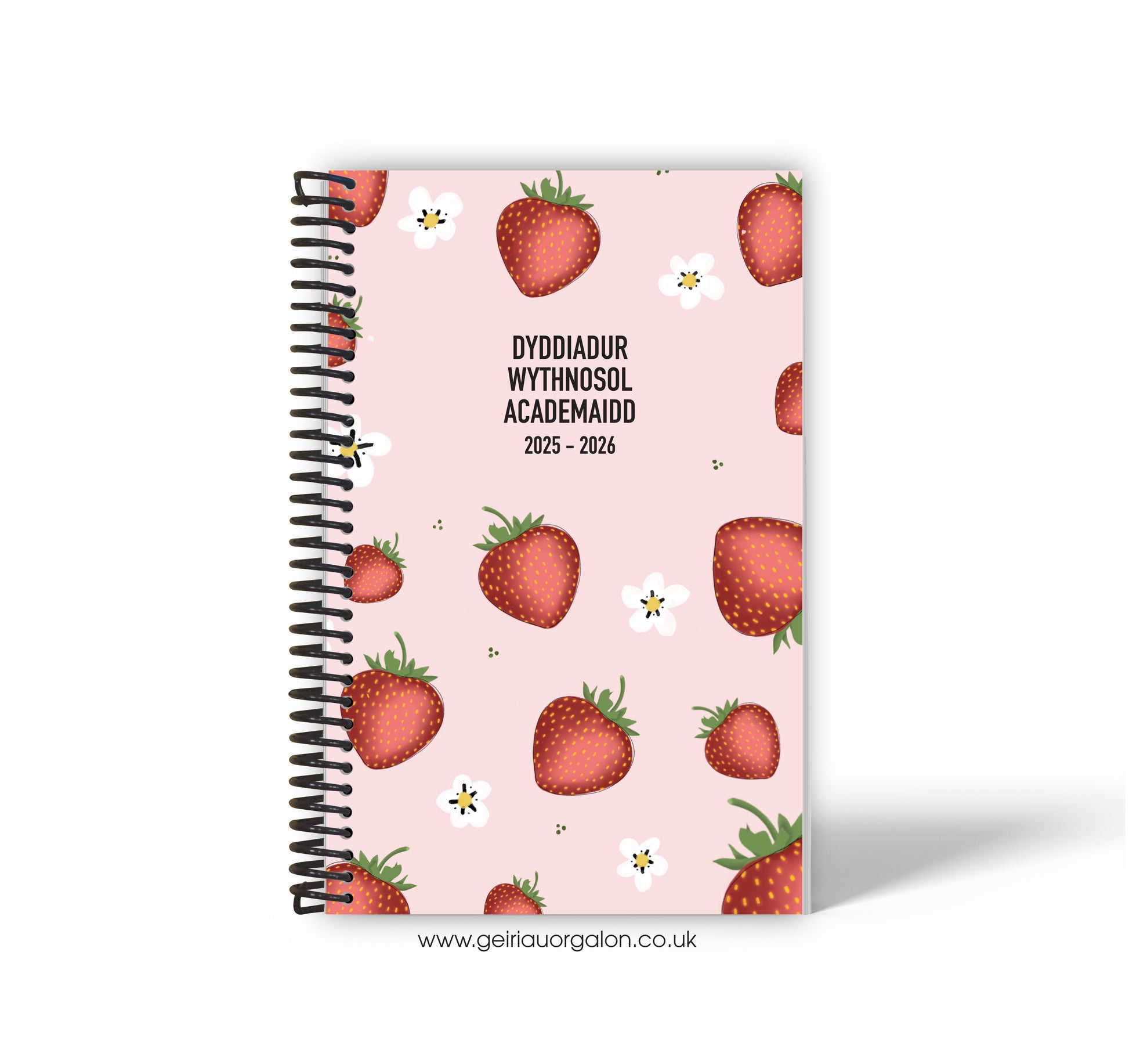 A4 Dyddiadur Wythnosol Academaidd NORMAL Spiralbound 2025-2026 (Mefus)