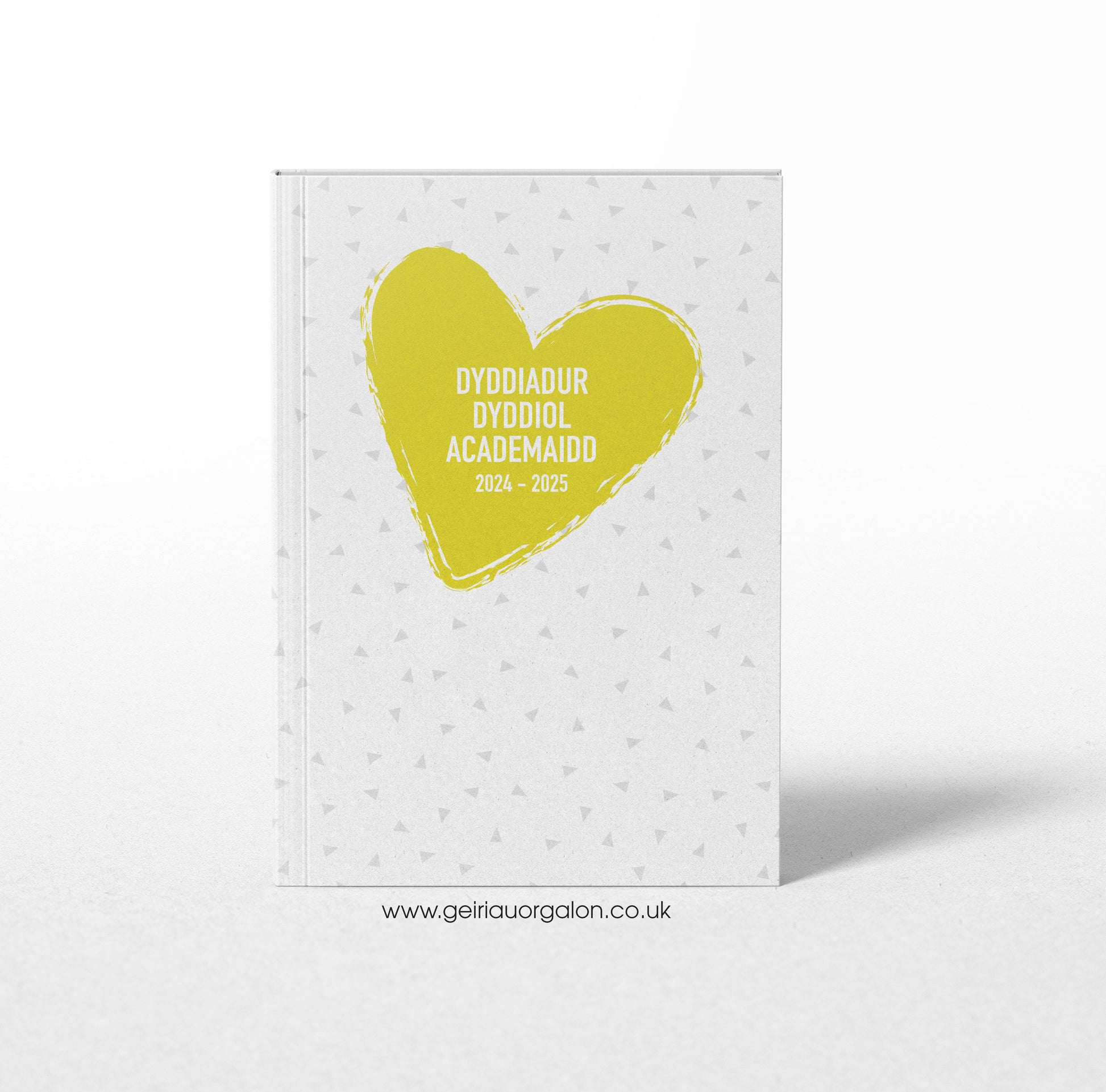 A4 Dyddiadur Dyddiol Academaidd Clawr Caled 2025 – 2026 (Trionglau a Calon Melyn)