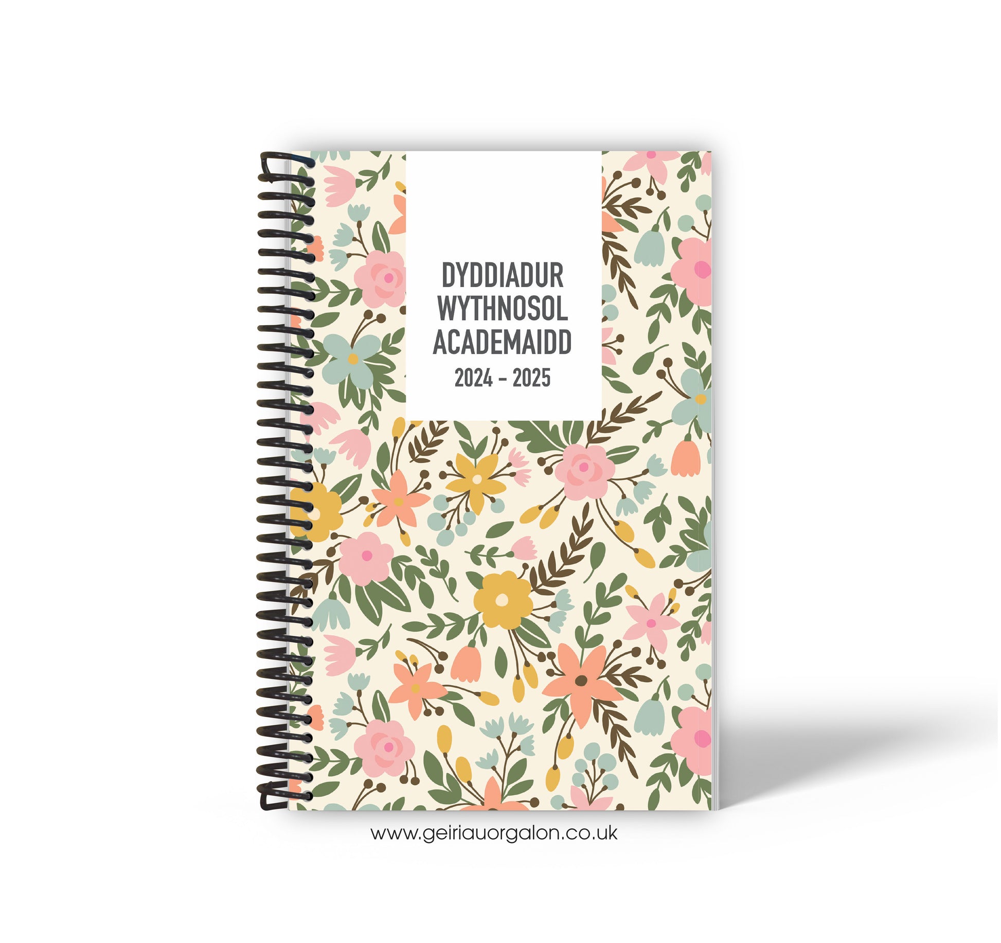 Our quality A4 Spiralbound Welsh Weekly Academic Diaries come with a variety of patterned front covers (NOT PERSONALISED). This isn’t just an academic diary – it’s a diary and notebook in one, thoughtfully divided into Autumn, Spring, and Summer terms with everything you need for your term organized in sections.