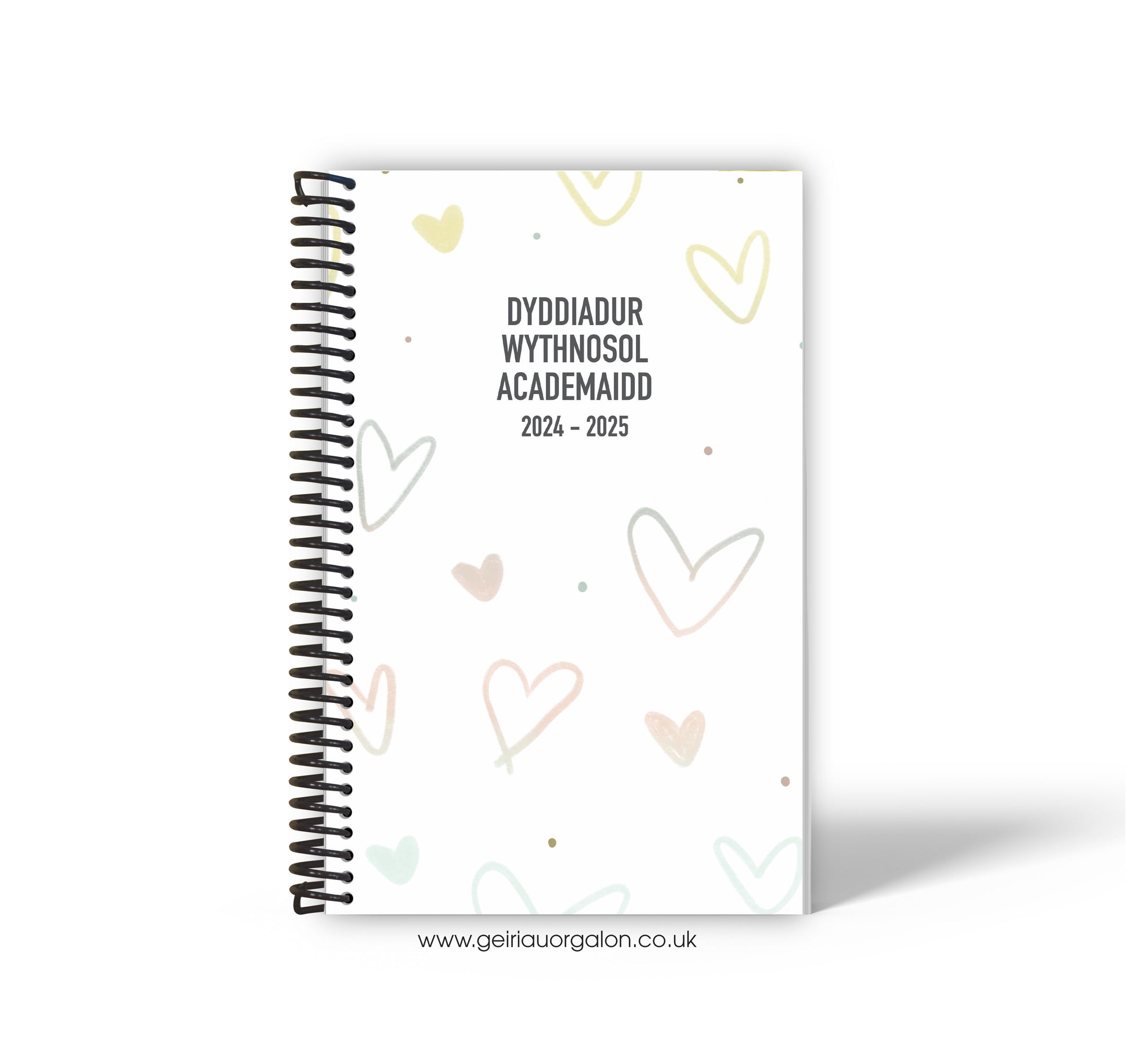Our quality A4 Spiralbound Welsh Weekly Academic Diaries come with a variety of patterned front covers (NOT PERSONALISED). This isn’t just an academic diary – it’s a diary and notebook in one, thoughtfully divided into Autumn, Spring, and Summer terms with everything you need for your term organized in sections.