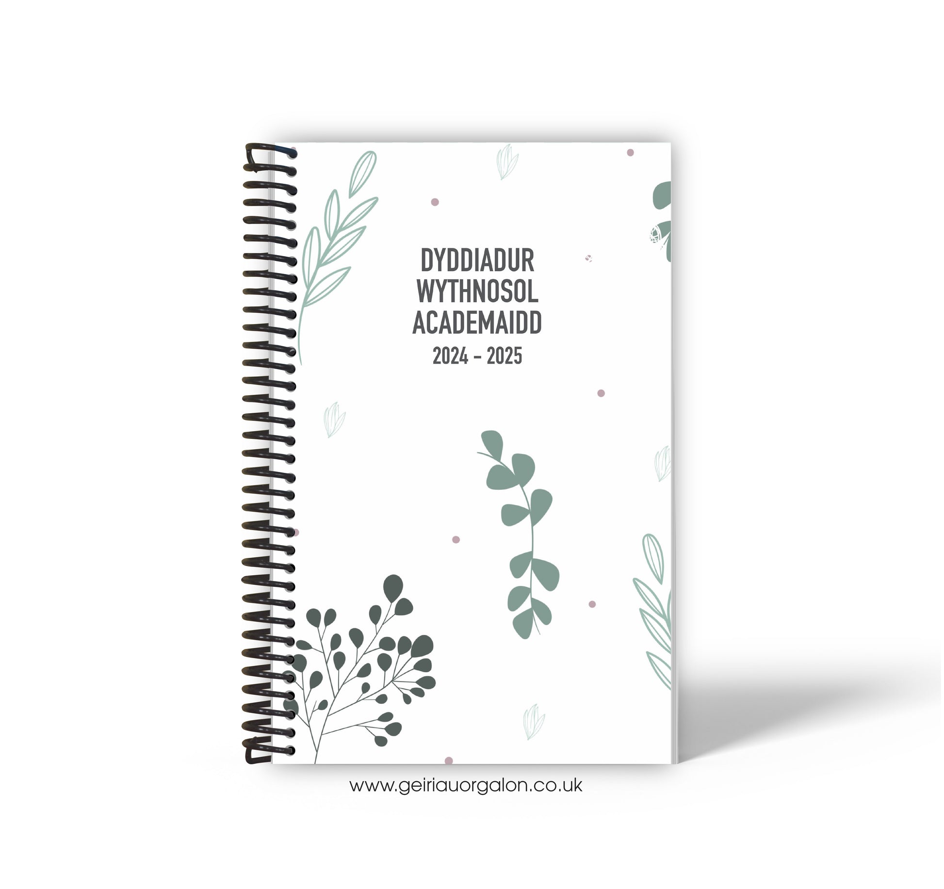 Our quality A4 Spiralbound Welsh Weekly Academic Diaries come with a variety of patterned front covers (NOT PERSONALISED). This isn’t just an academic diary – it’s a diary and notebook in one, thoughtfully divided into Autumn, Spring, and Summer terms with everything you need for your term organized in sections.