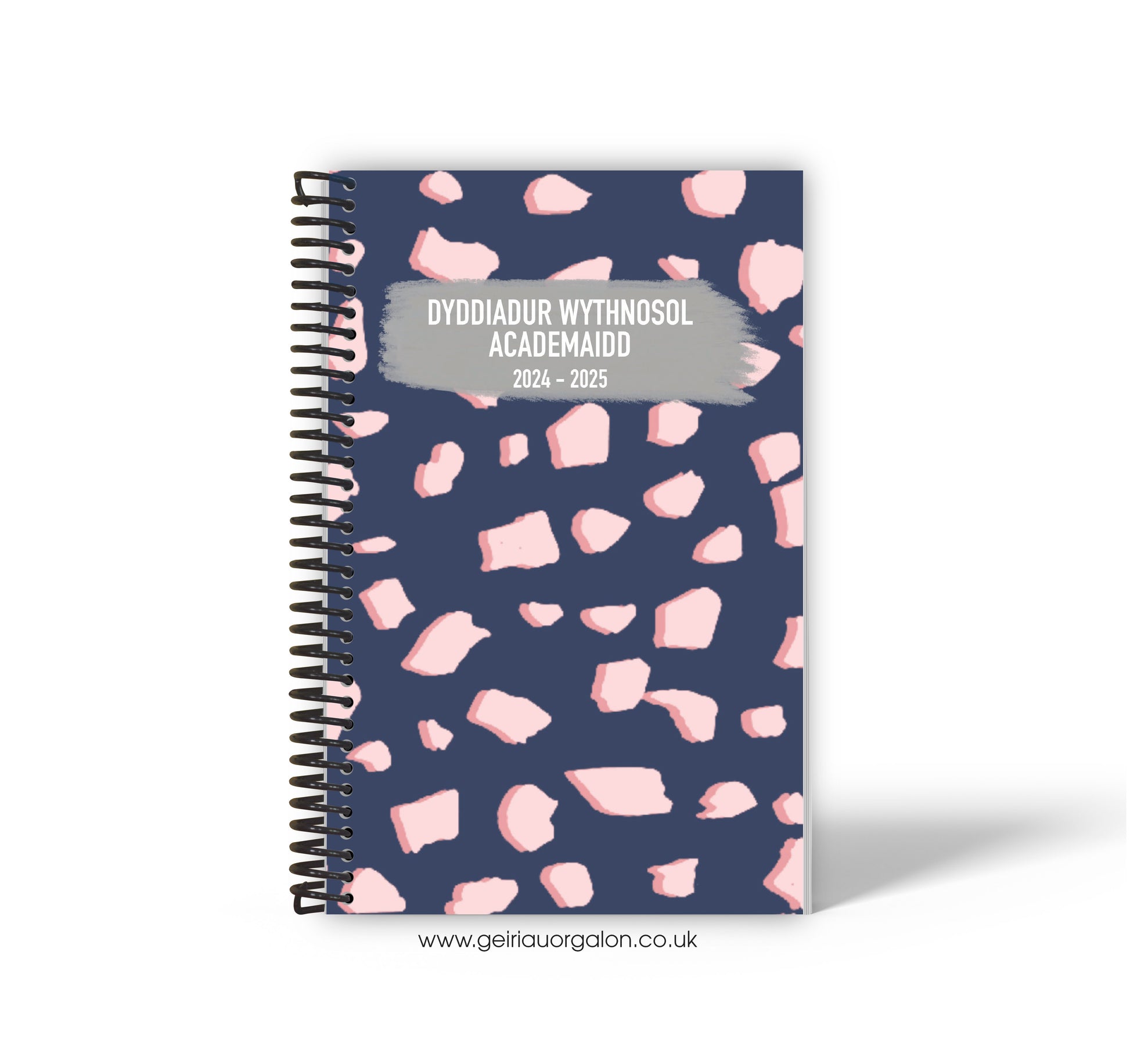 Our quality A4 Spiralbound Welsh Weekly Academic Diaries come with a variety of patterned front covers (NOT PERSONALISED). This isn’t just an academic diary – it’s a diary and notebook in one, thoughtfully divided into Autumn, Spring, and Summer terms with everything you need for your term organized in sections.