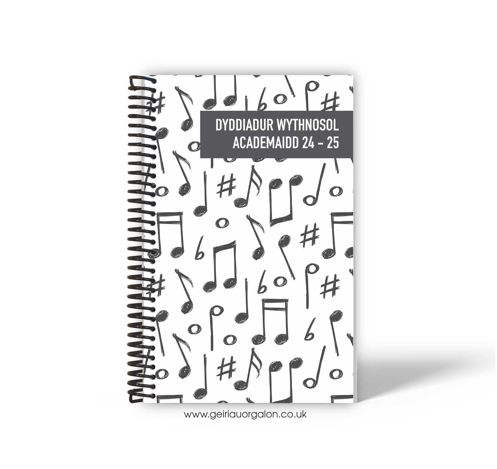 A4 Dyddiadur Wythnosol Academaidd NORMAL Spiralbound 2025-2026 (Nodiadau Cerddorol)