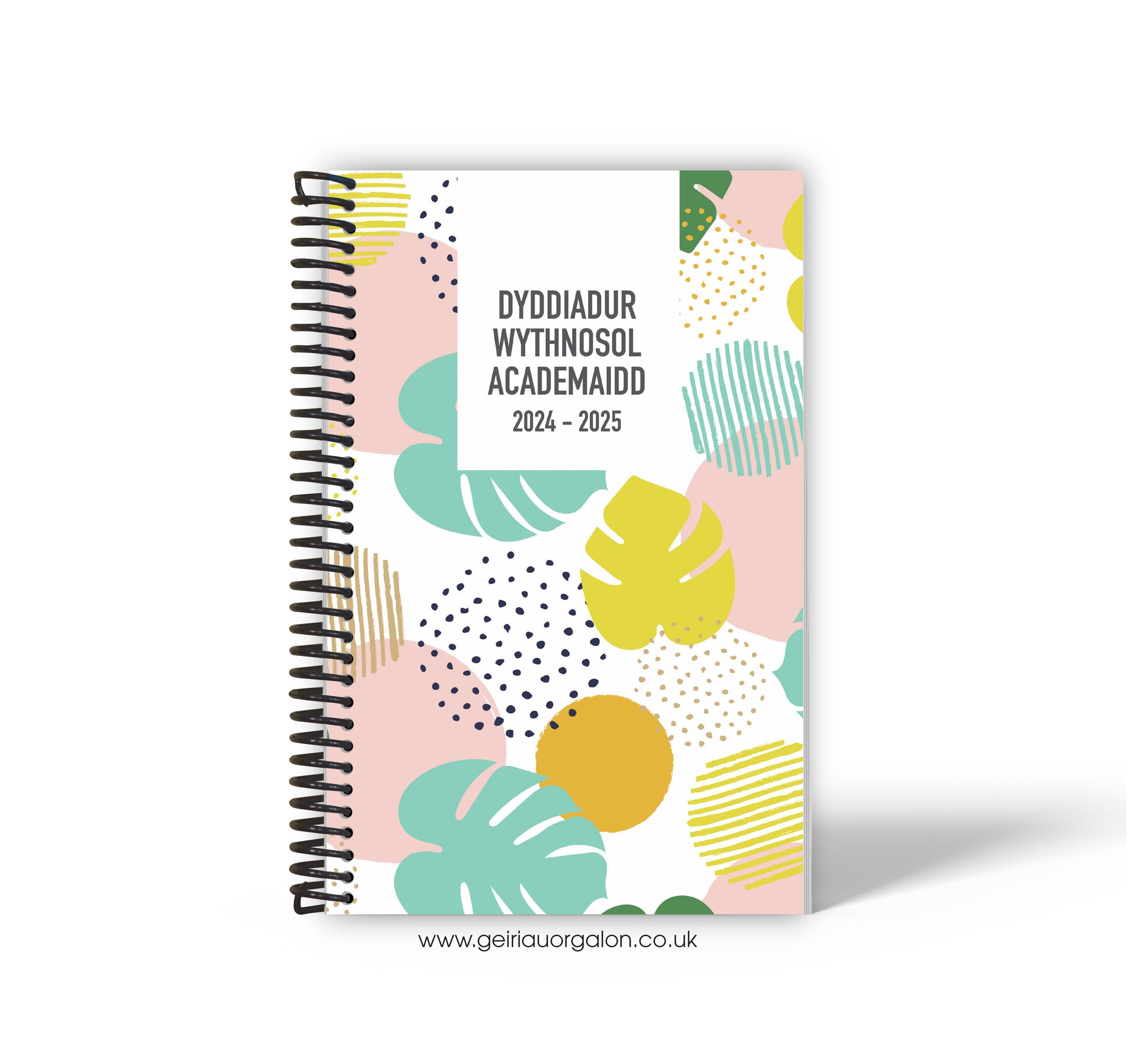 Our quality A4 Spiralbound Welsh Weekly Academic Diaries come with a variety of patterned front covers (NOT PERSONALISED). This isn’t just an academic diary – it’s a diary and notebook in one, thoughtfully divided into Autumn, Spring, and Summer terms with everything you need for your term organized in sections.