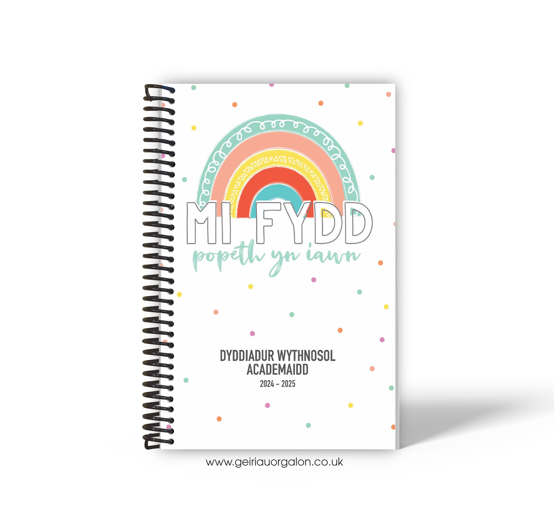 Our quality A4 spiralbound Welsh Weekly Academic Diaries come with a variety of patterned front covers (NOT PERSONALISED). This isn’t just an academic diary – it’s a diary and notebook in one, thoughtfully divided into Autumn, Spring, and Summer terms with everything you need for your term organized in sections.