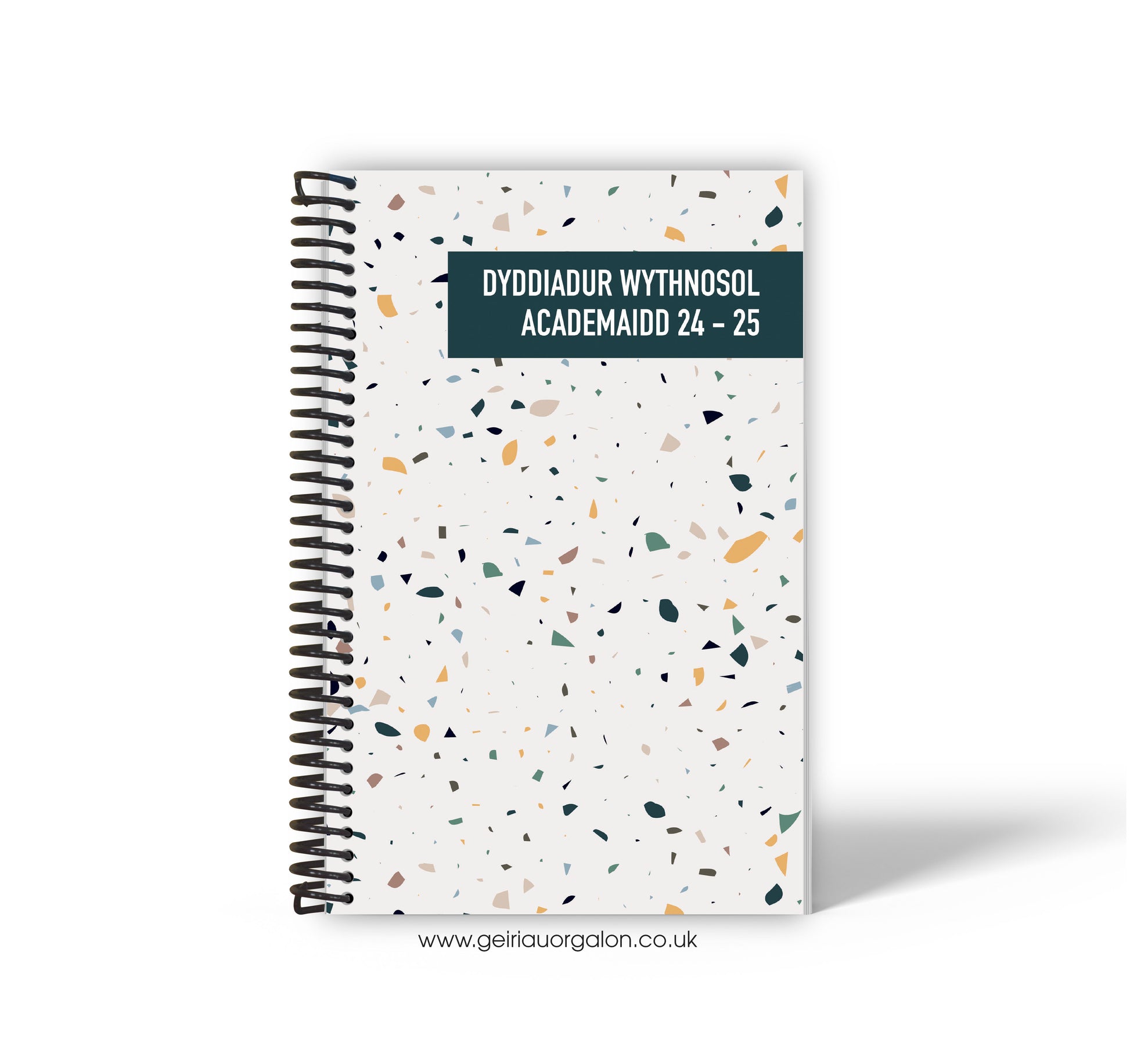 Our quality A4 Spiralbound Welsh Weekly Academic Diaries come with a variety of patterned front covers (NOT PERSONALISED). This isn’t just an academic diary – it’s a diary and notebook in one, thoughtfully divided into Autumn, Spring, and Summer terms with everything you need for your term organized in sections.