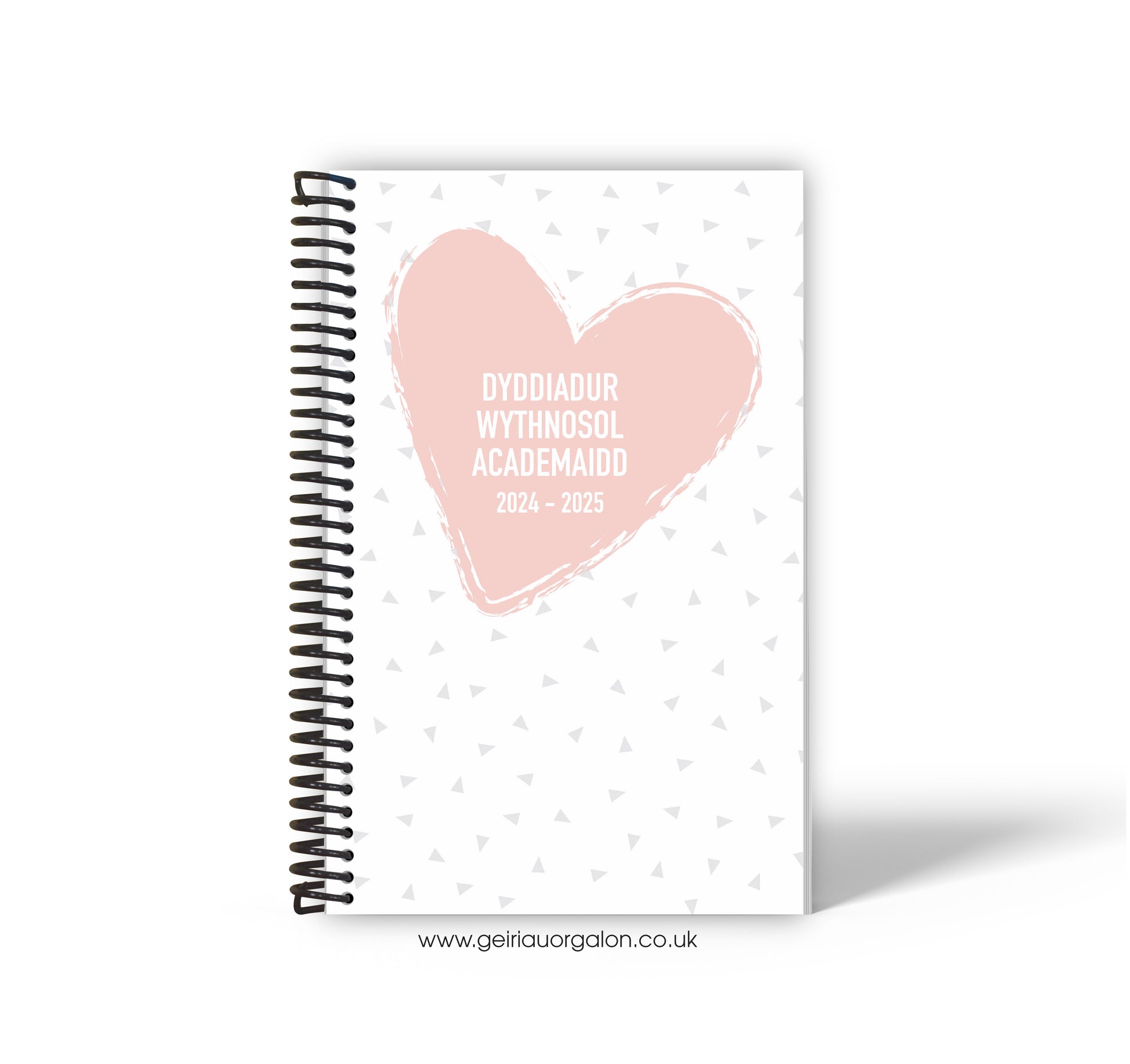 A4 Dyddiadur Wythnosol Academaidd NORMAL Spiralbound 2025-2026 (Trionglau a Calon Pinc)