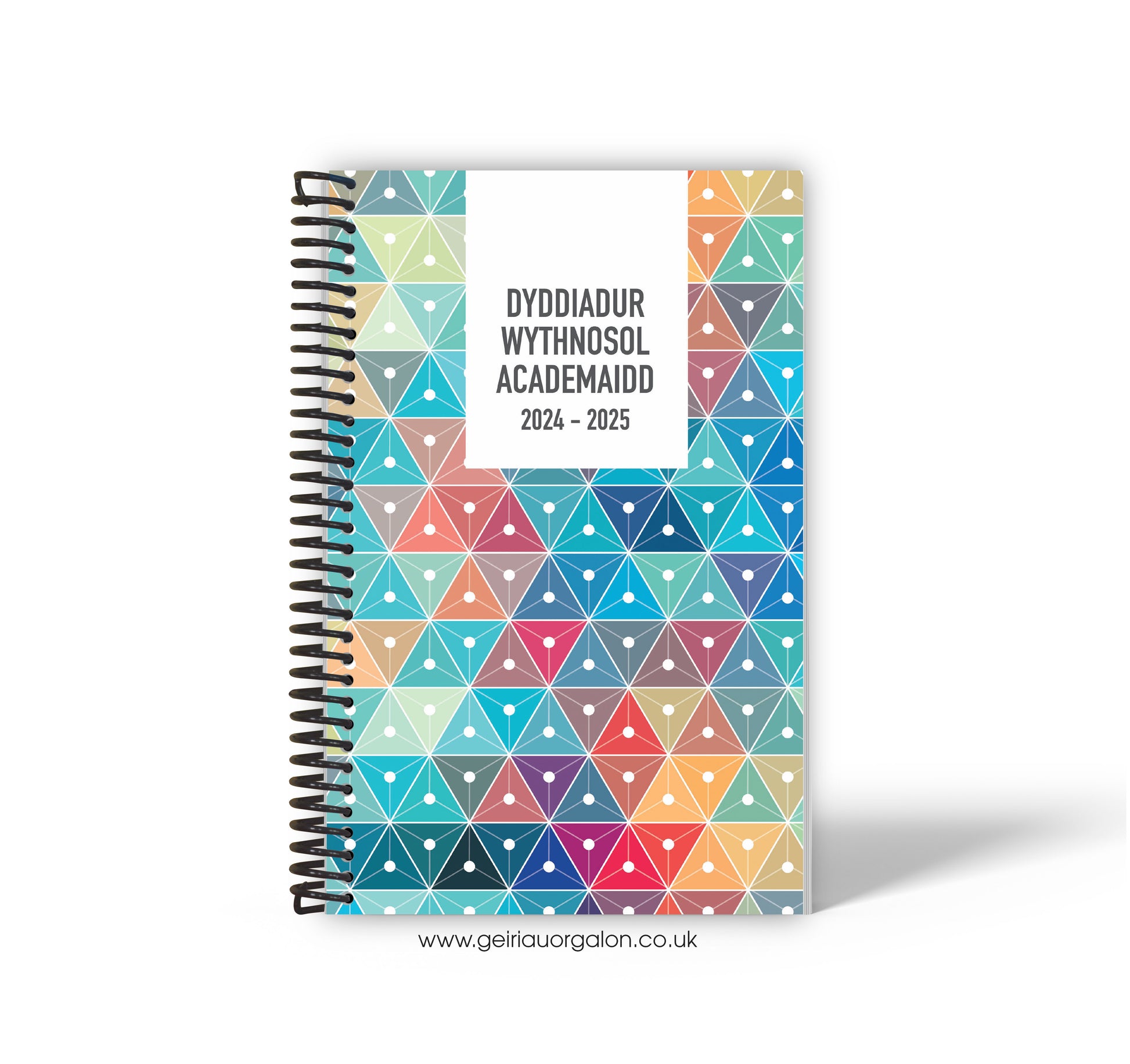 Our quality A4 Spiralbound Welsh Weekly Academic Diaries come with a variety of patterned front covers (NOT PERSONALISED). This isn’t just an academic diary – it’s a diary and notebook in one, thoughtfully divided into Autumn, Spring, and Summer terms with everything you need for your term organized in sections.