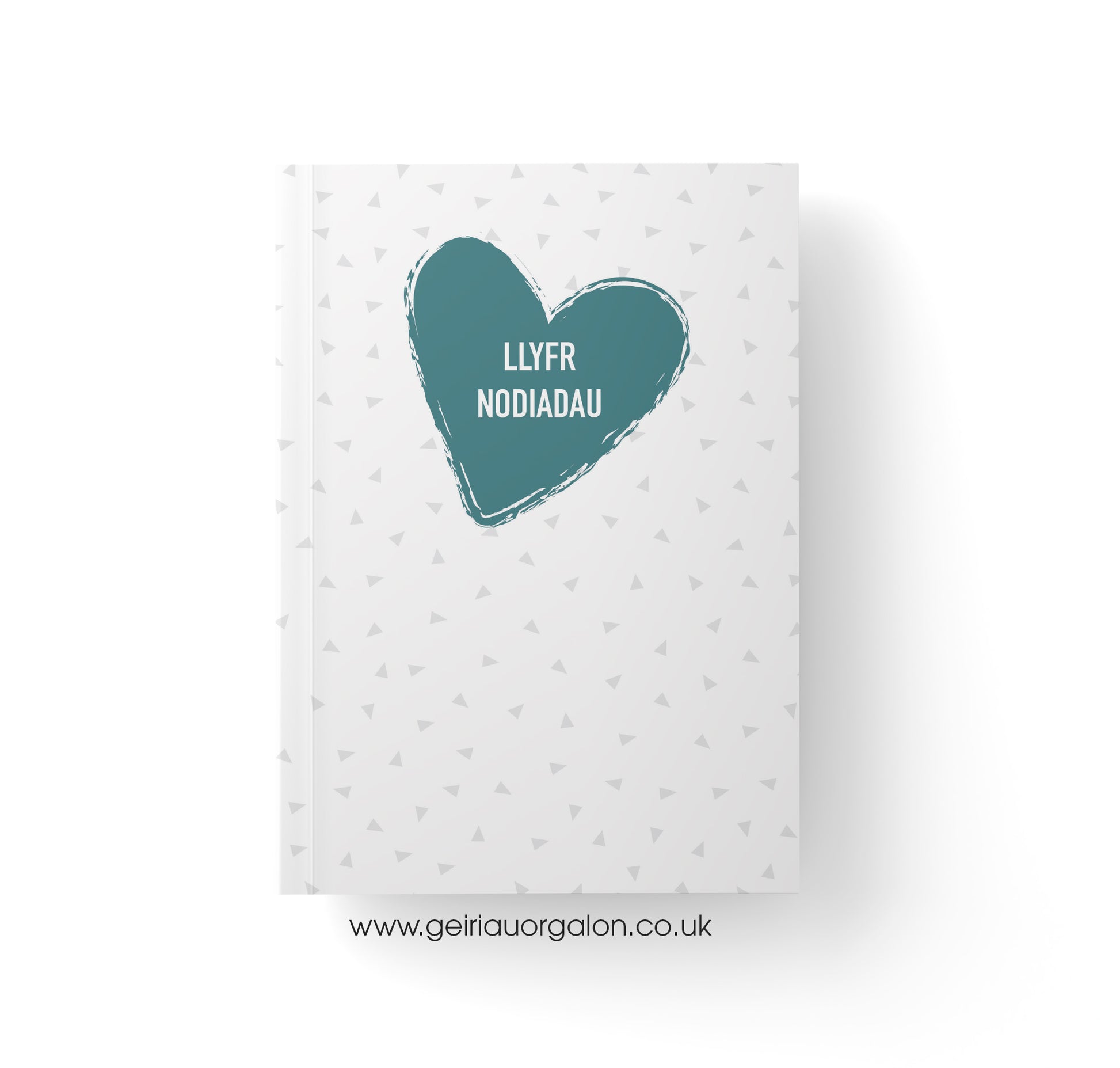 Llyfr Nodiadau A5 - Llinellau (Trionglau a Calon 'Teal')